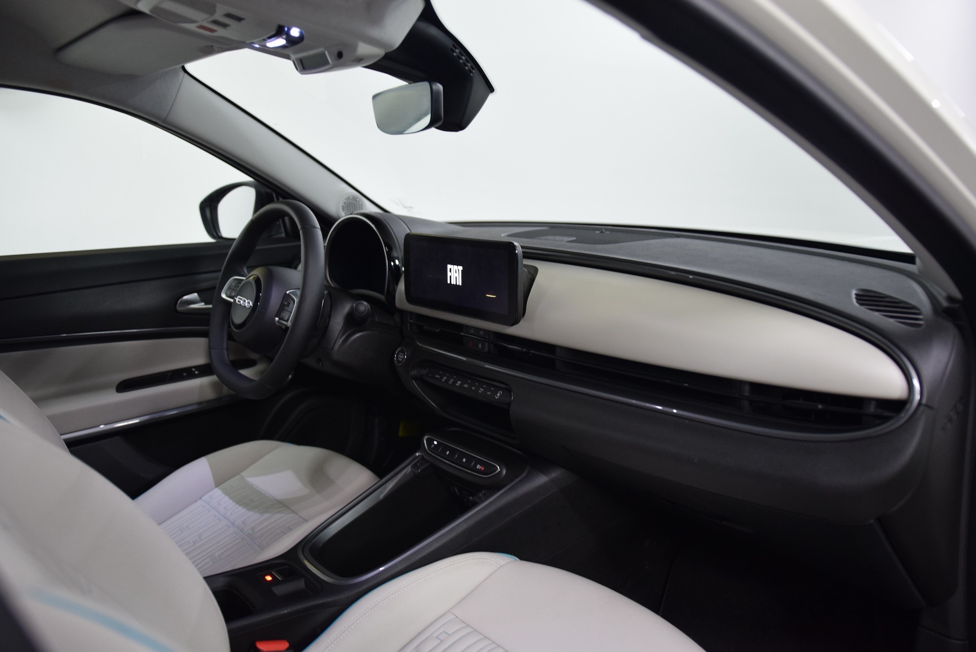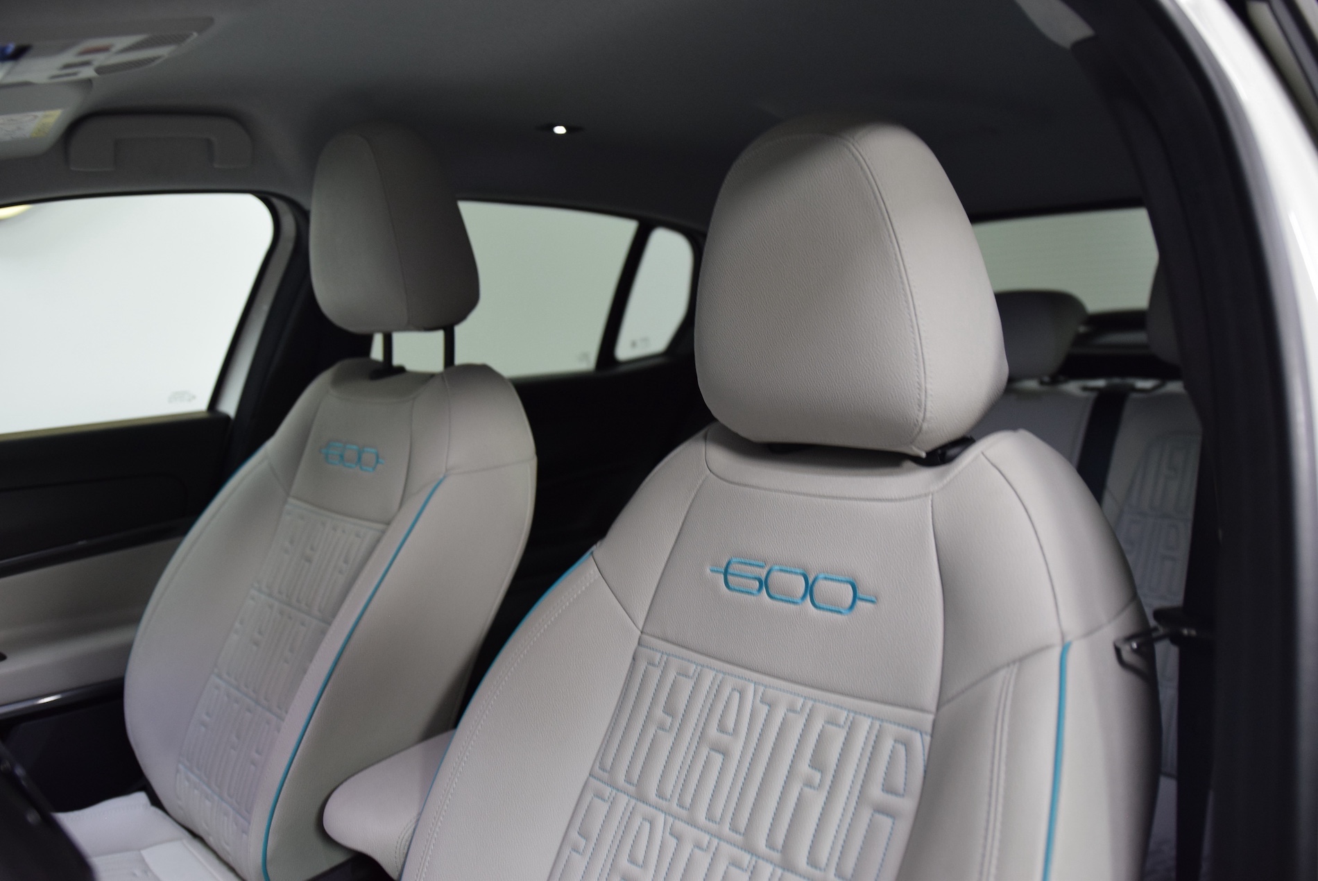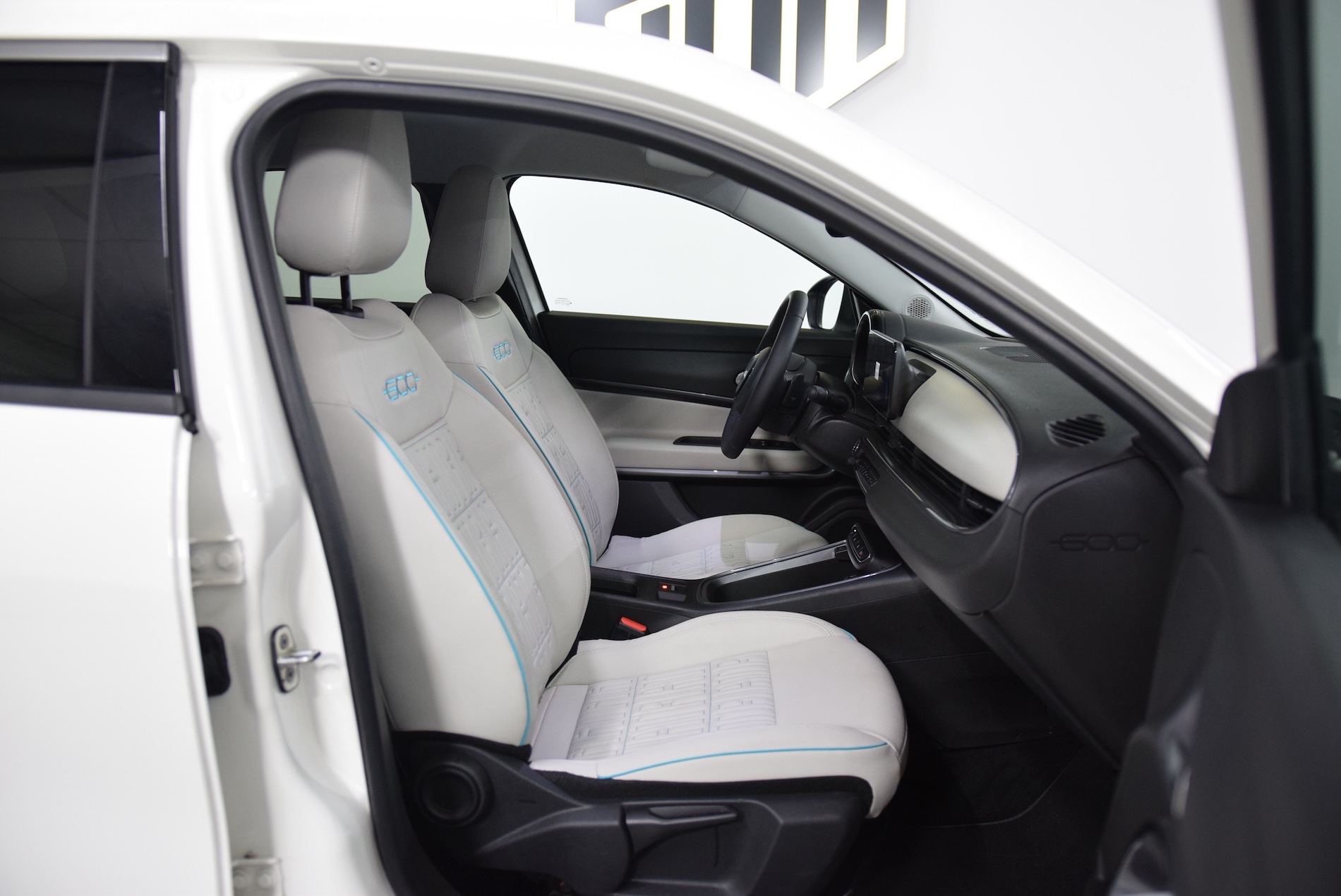 - Sellerie premium ivoire soft touch avec monogramme FIAT et logo 600 Bleu Azur