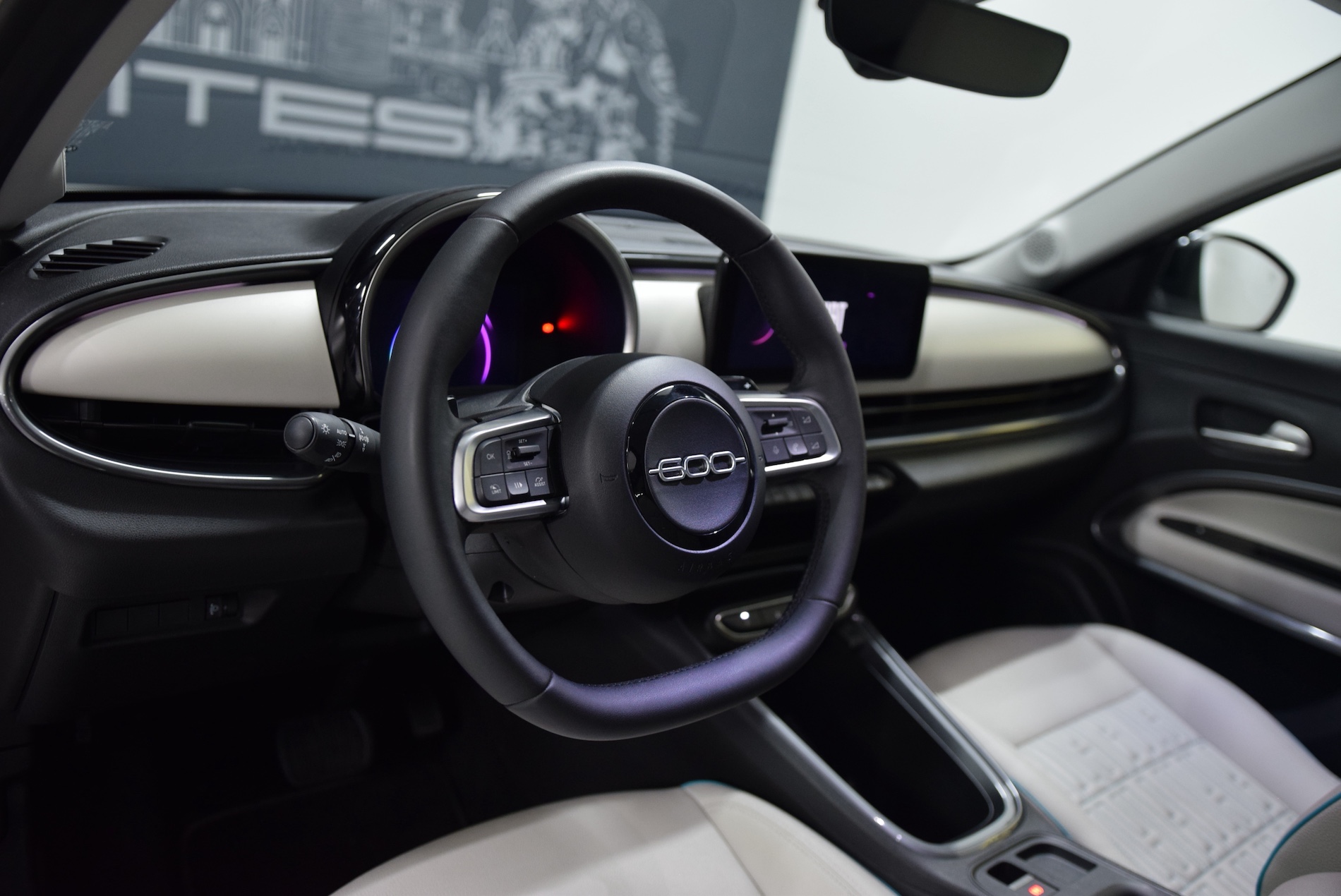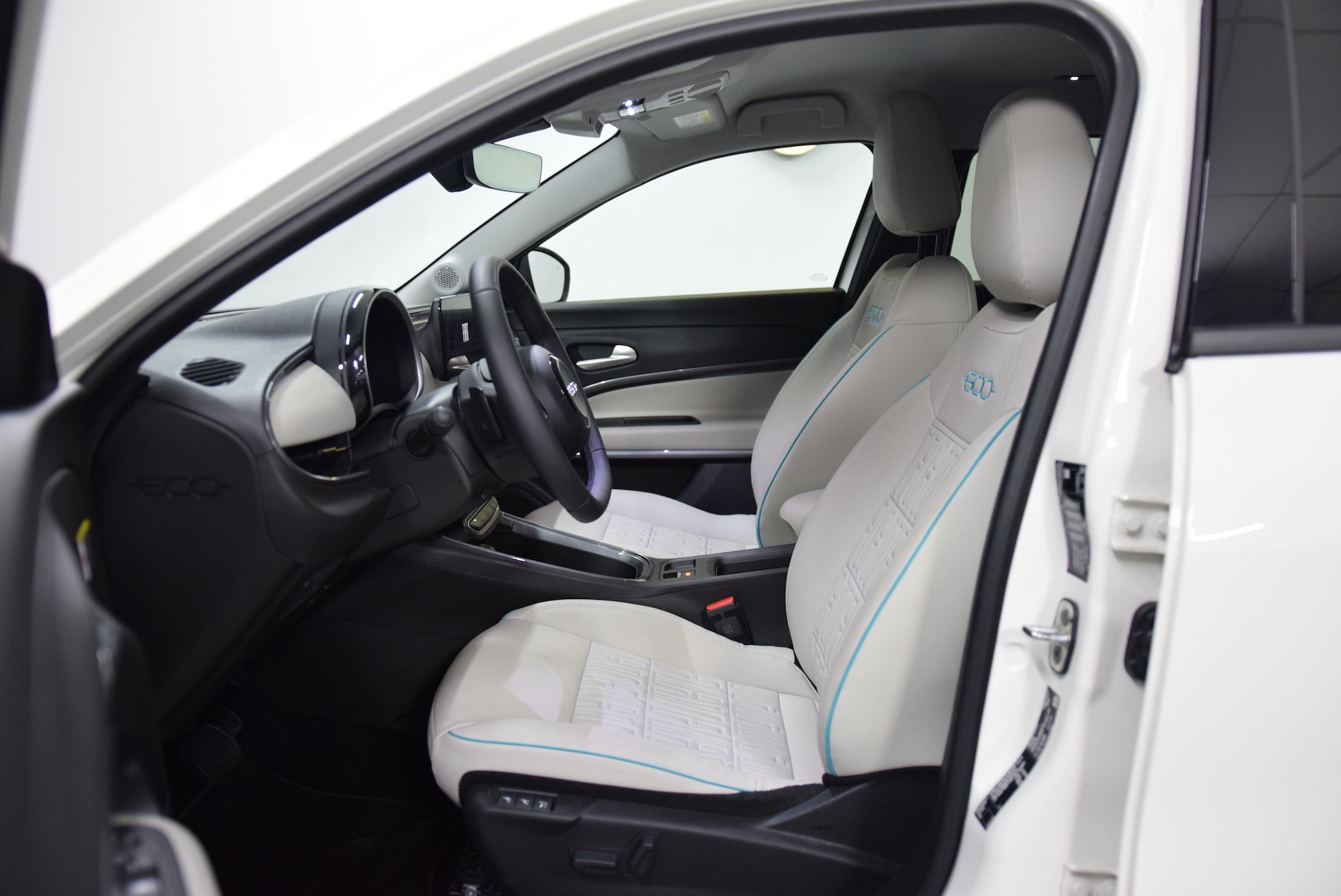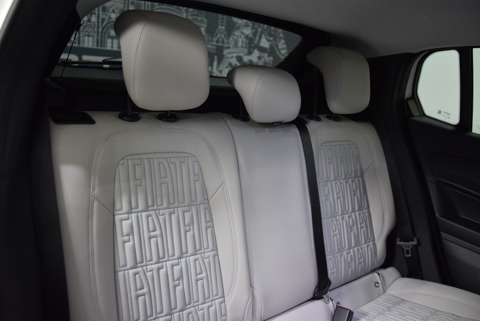 - Sellerie premium ivoire soft touch avec monogramme FIAT et logo 600 Bleu Azur