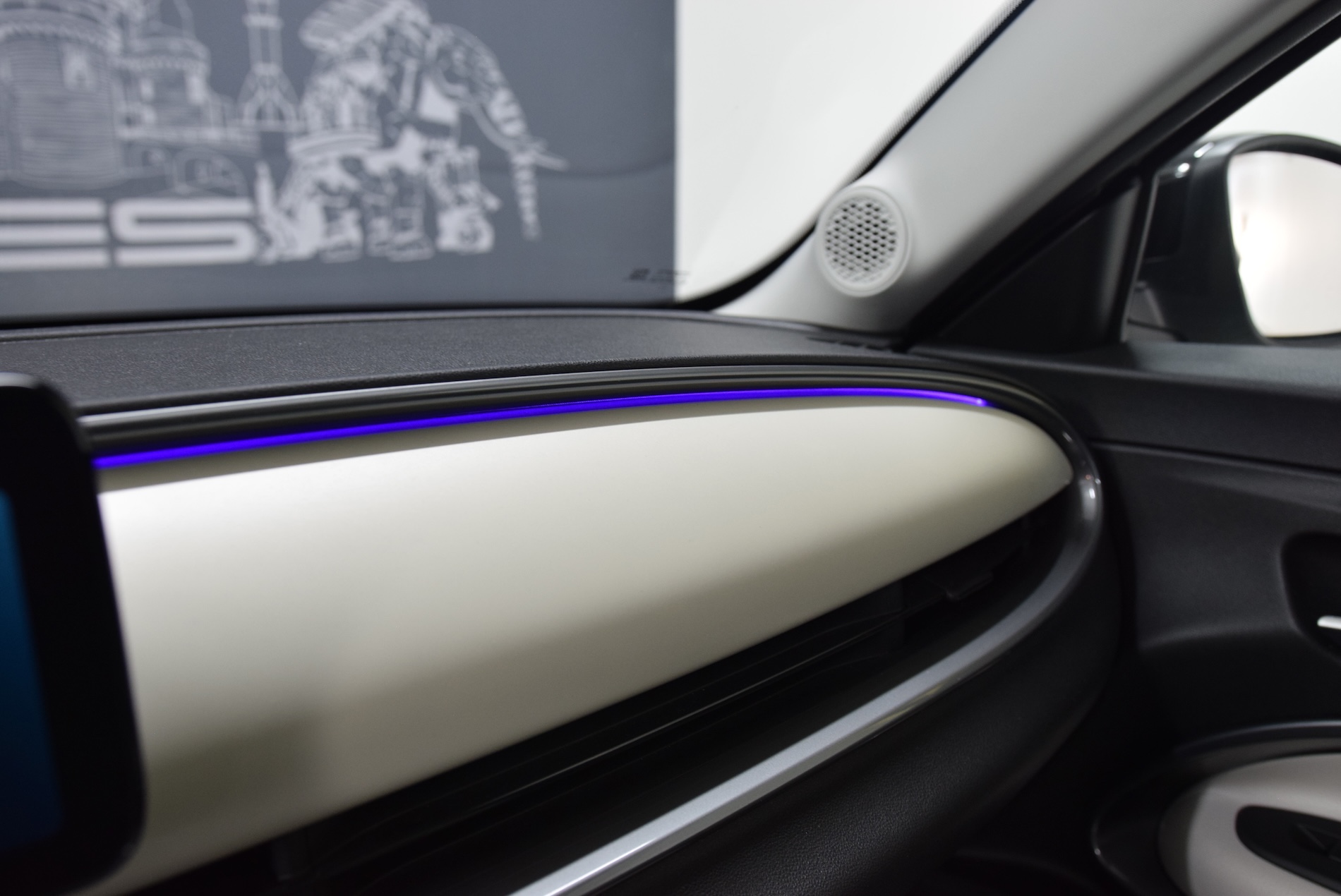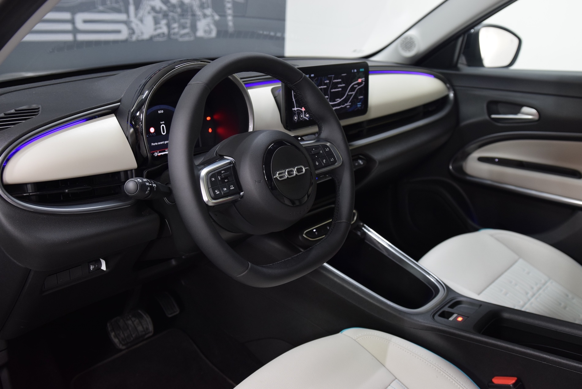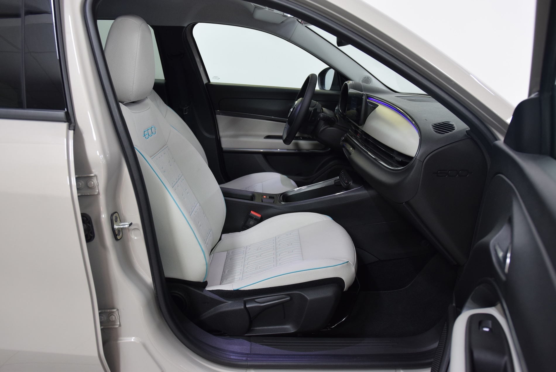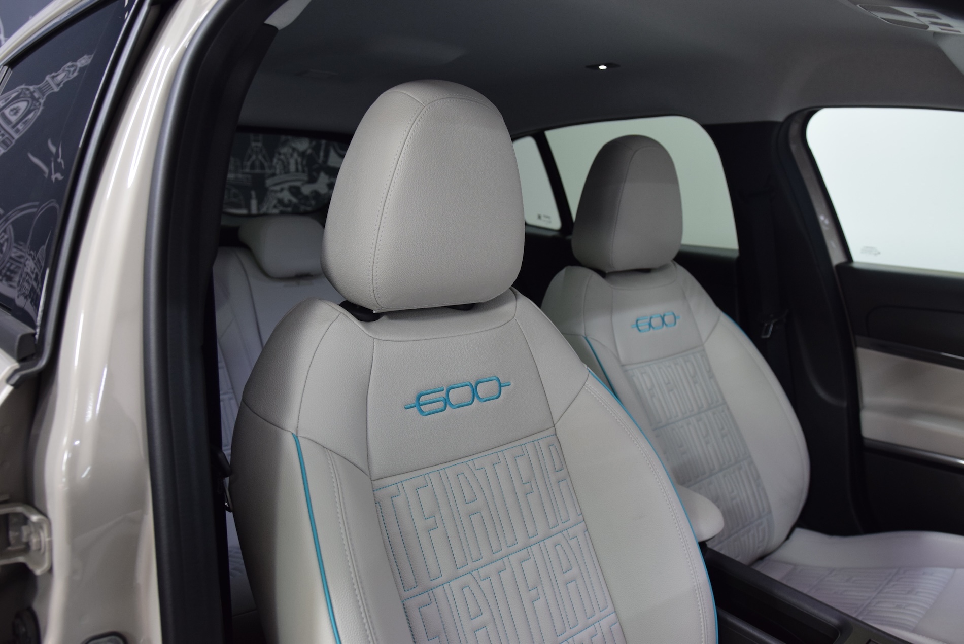 - Sellerie premium ivoire soft touch avec monogramme FIAT et logo 600 Bleu Azur