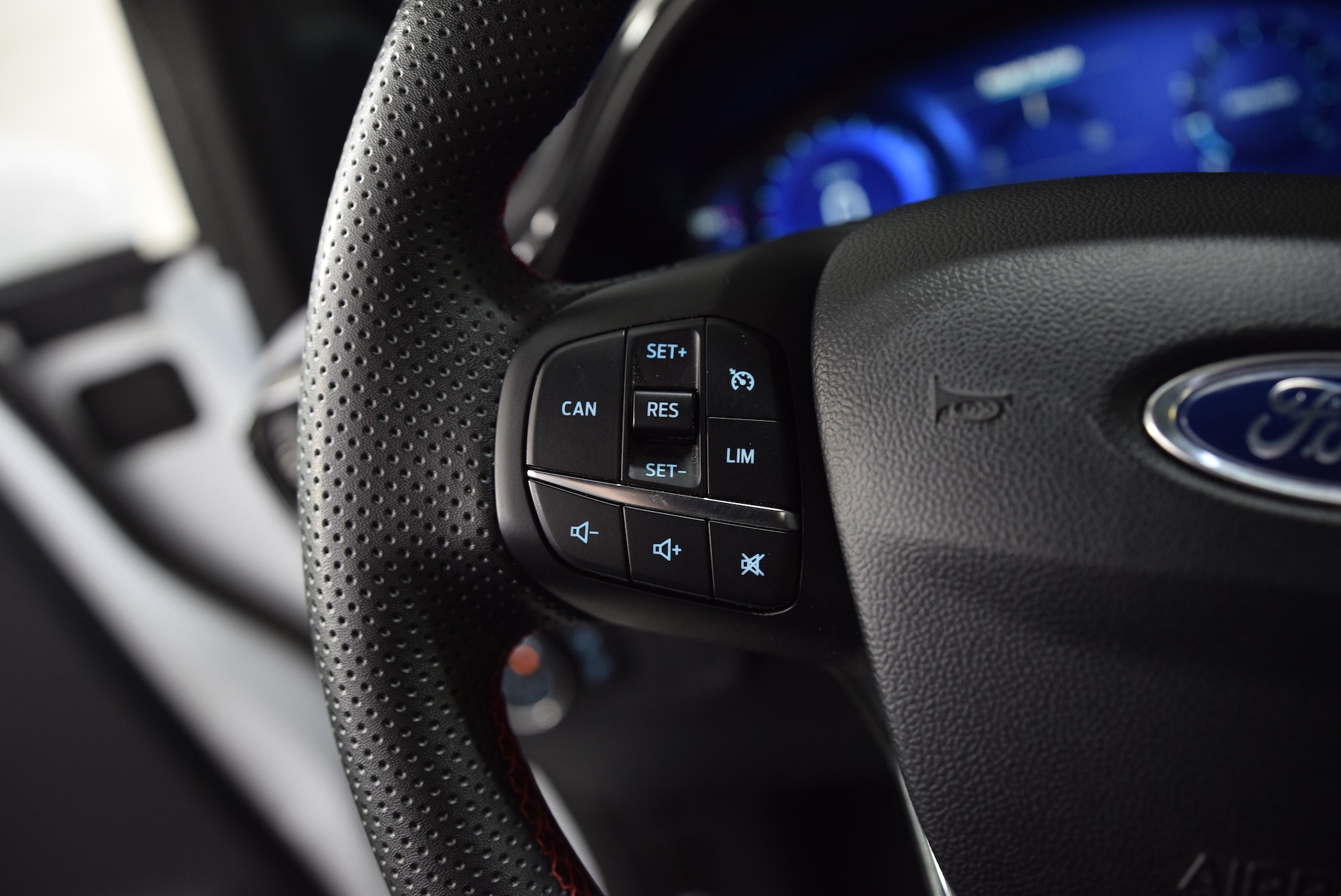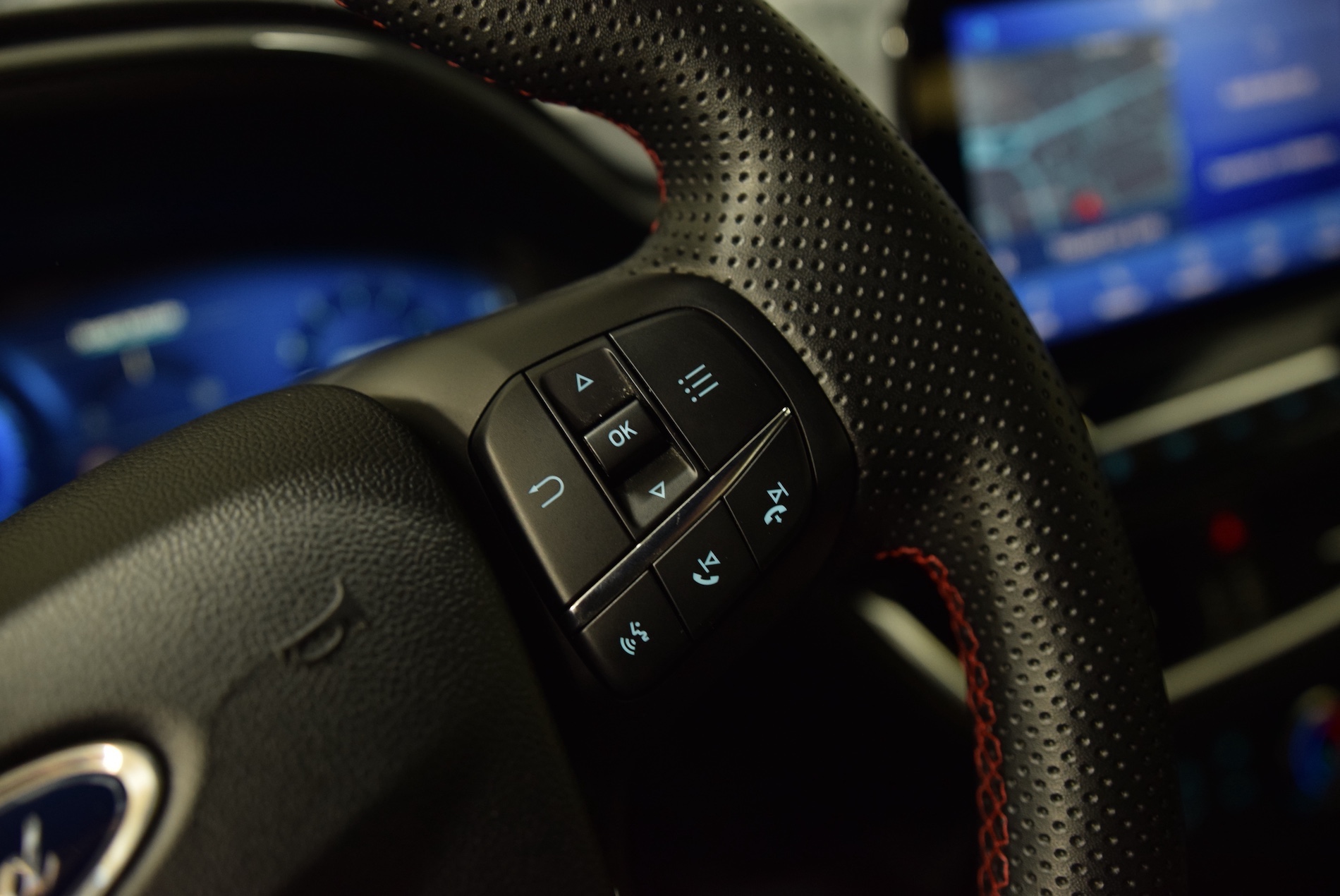 - Volant a meplat 3 branches ST-Line avec surpiqures rouges