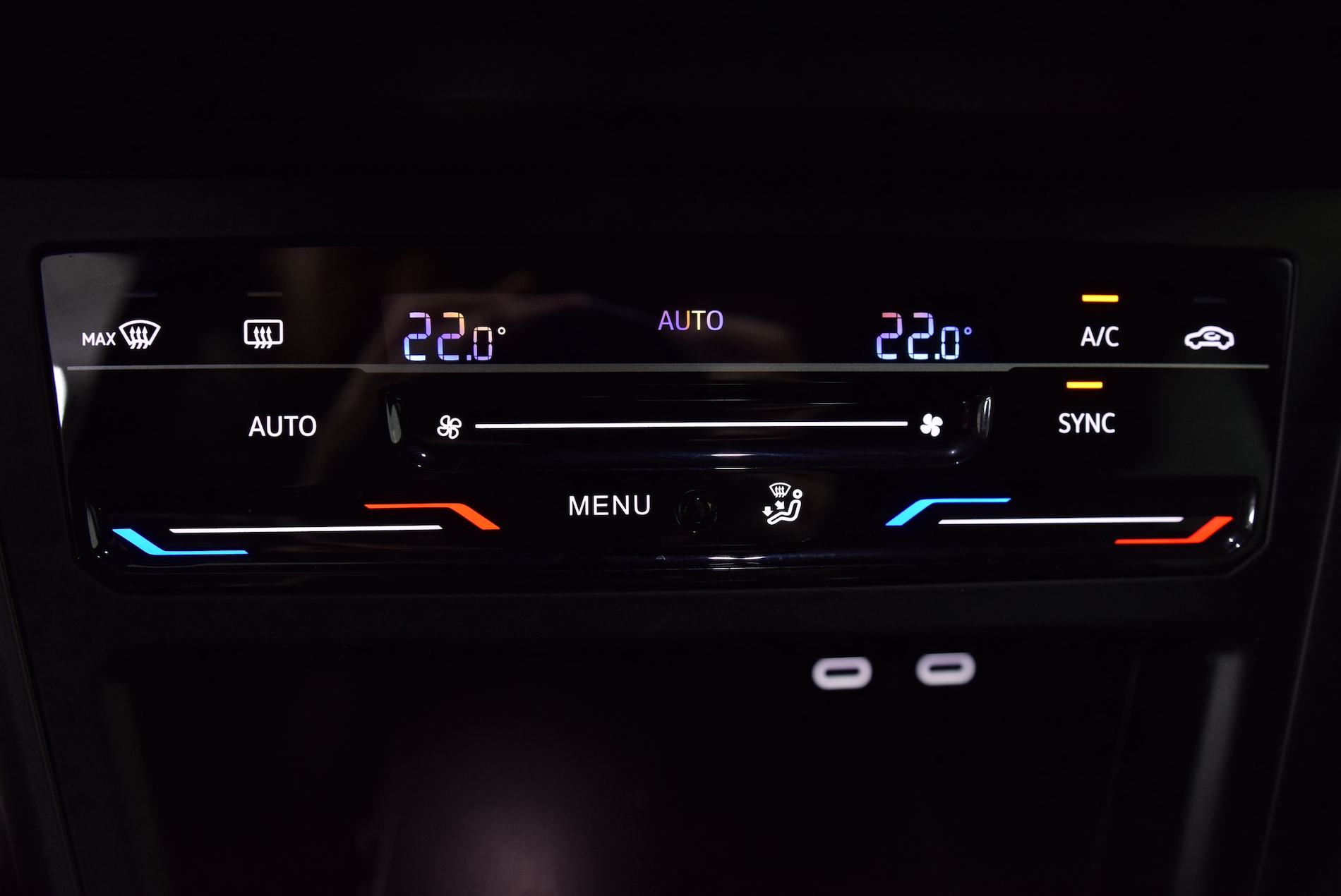 - Accoudoir central AV reglable en longueur avec compartiment de rangement et 2 ports USB-C de