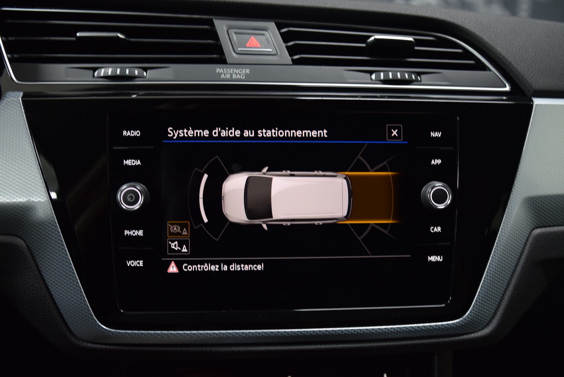 - Aide au stationnement AV/AR avec signaux sonores et visualisation de la distance des obstacles sur